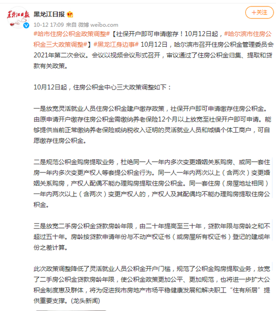 原标题:社保开户即可申请缴存!10月12日起,哈尔滨市住房公积金三大政策调整