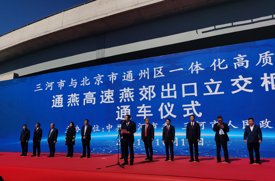 10月12日,河北省三河市燕郊西出口改建工程正式通车,三河市交通局局长刘鸿宇说,三河通往北京城市副中心仅需10分钟。