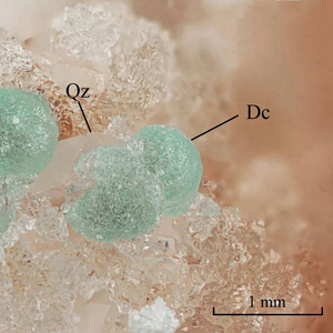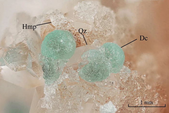 与共生矿物石英(Qz)、异极矿(Hmp)