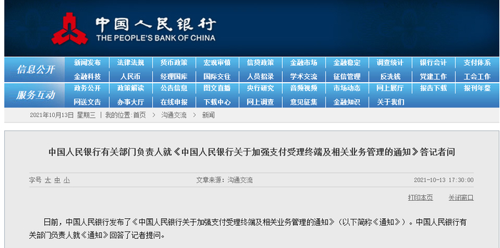 原标题:中国人民银行有关部门负责人就《中国人民银行关于加强支付受理终端及相关业务管理的通知》答记者问