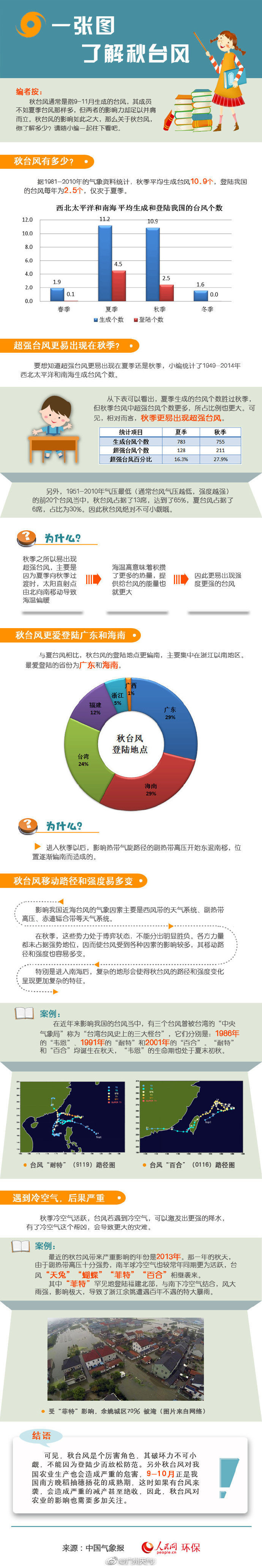 秋台风通常是指9-11月生成的台风,其成员不如夏季台风那样多,但两者的影响力却足以并肩而立。秋台风有多少?超强台风更易出现在秋季?遇到冷空气后果严重?一图带你了解↓↓↓