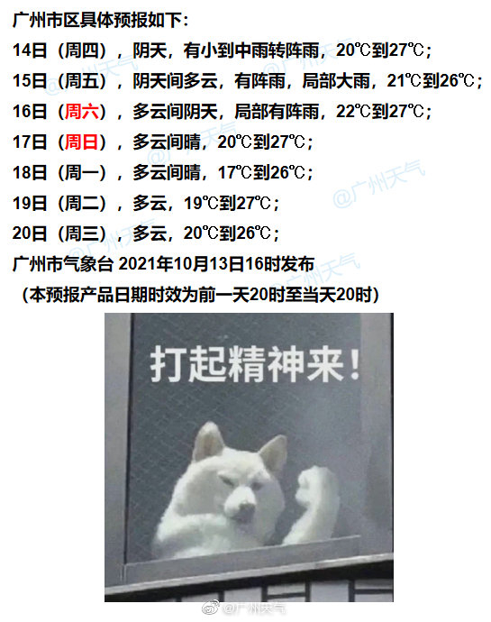 广州方面,今明两天仍有阵雨,伞不能忘。周末天气转好,可以假装是秋天~