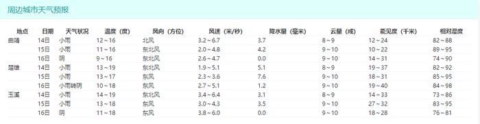 预计昆明重点区域及周边城市14-15日为间歇性小雨天气,对交通出行有一定影响,请提前做好防范。