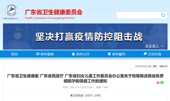 近日,广东省卫生健康委、省民政厅、省妇女儿童工作委员会办公室联合发布了《统筹推进免费婚前孕前保健工作通知》(以下简称《通知》)。