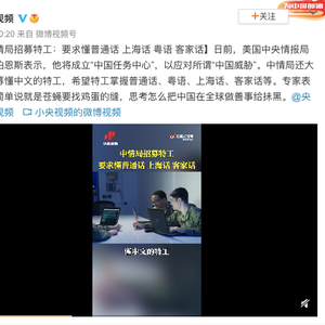 原标题:CIA招募特工要求曝光:要懂普通话、上海话、粤语、客家话……