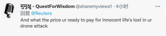 “你们准备为在无人机袭击中丧生的无辜生命付多少钱。”
