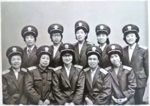1985年5月,女干警合影留念。前排左起,杨加林(经济科检察员)、庞效贞(控申科内勤)、晋彤、徐忠梅、王丁香(办公室干事,后任办公室副主任、经济科长),后排右起李变花(办公室干事,后任民行科长、批捕科长)、文耐萍(刑事科,后任办公室主任)、贾惠(刑事科内勤)、赵丽萍(刑事科,后任控申科副科长、监所科副科长)、王金翠(法纪科,后任起诉科副科长)。徐忠梅人称院里的“红管家”,人们领办公办案用纸,要一张一张地数,墨水从她的大墨水瓶里倒。