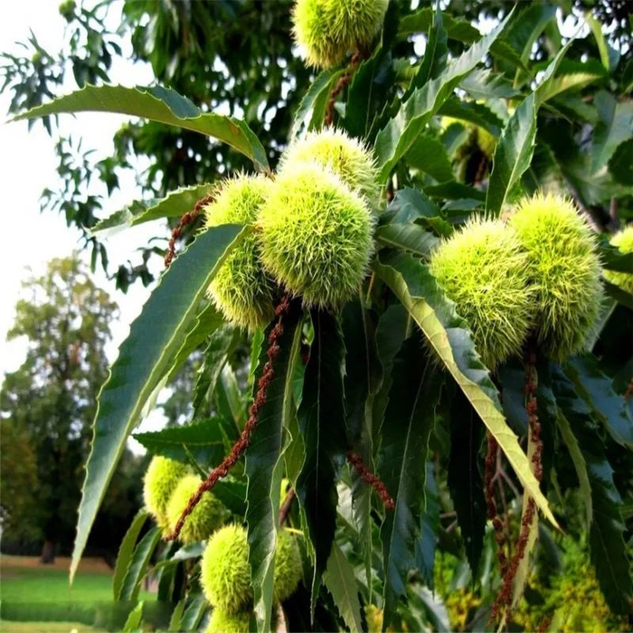 板栗树枝叶繁茂,树冠很美,树叶鲜亮碧绿,花是从树枝顶端生出,望之媚人。可以起到绿化、遮阴、净化空气诸多作用。
