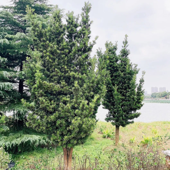 常绿乔木,树皮浅纵裂,成薄片状脱落。叶螺旋状着生,条状披针形,先端尖,长7-12里面,宽7-10毫米。