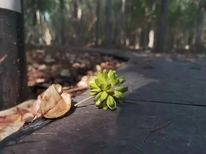 板栗是大家非常熟悉的秋季果实,但大部分师生可能都没有见过它像个绿色毛球的原始形态,扒开“外衣”才是我们日常所见的棕色坚果颗粒。果实含有丰富的营养成分,包括糖类、蛋白质、多种维生素和无机盐等。板栗的“绿毛球”看着可爱,其实刺很硬,扎的疼,就像一只海胆,大家千万不能用手直接拿,以防被扎伤。