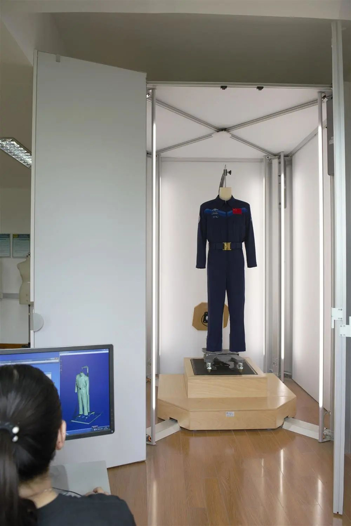 最先试穿这些航天服样衣的不是航天英雄,而是体温37度且“会出汗”的暖体假人。东华大学服装学院张渭源教授团队研制出假人系统,皮肤以及体核部位分布着密密麻麻的各类传感器等电子器件。“电脑计算输出的0.3或0.1,就量化预测了着装时人体是微微出汗或大汗淋漓,从而判断出衣服的舒适程度。”当年的张渭源弟子、如今的服装与艺术设计学院院长李俊表示,这样它就可以替代航天员在模拟外太空条件下进行生物物理学评价,为我国第一代舱外航天服定型获取工程数据。