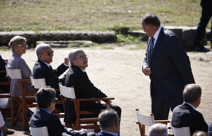 希腊总统卡特里娜·萨克拉罗普卢、国际奥委会主席托马斯·巴赫、希腊奥委会主席斯皮罗斯·卡普拉洛斯与北京冬奥组委的特别代表——北京冬奥组委副主席于再清共同出席了当天的采集仪式。