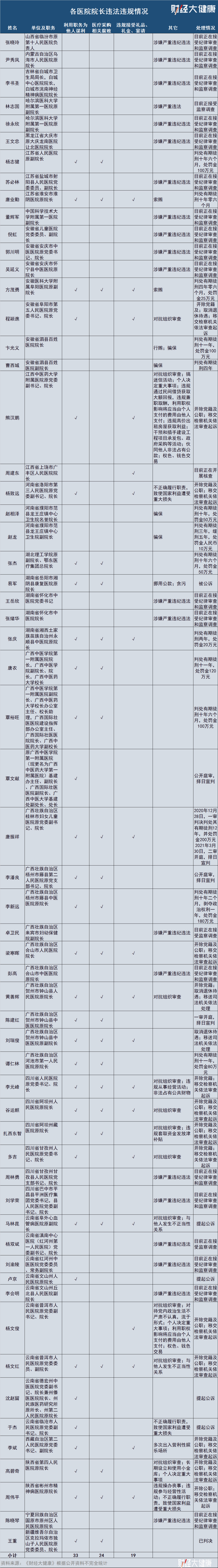 《财经》记者梳理公开资料发现,79名受查处的官员和院长中,已有32人由于为他人在医药采购等方面谋取利益受到处分。