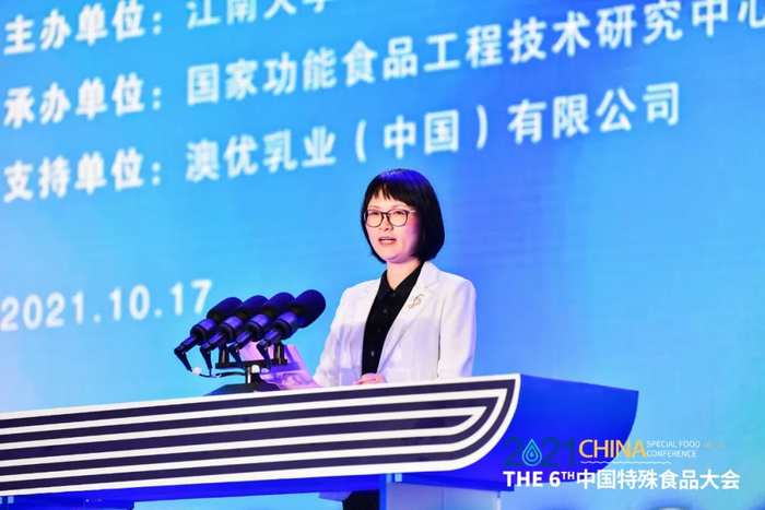 中国工程院院士朱蓓薇围绕“我国特殊食品产业的创新与发展”主题作分享。她指出,海洋生物资源是非常丰富的,可以成为特殊食品资源的宝库。同时,中国特殊食品产业的多元融合与创新发展离不开品种功能丰富化、品类多元化、消费群体多元化、满足个性化需求。依靠产学研深度结合,促进特殊食品高质量发展。