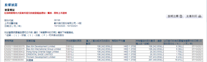 截至发稿,港交所披露易信息显示,郑州银行尚无权益变更。