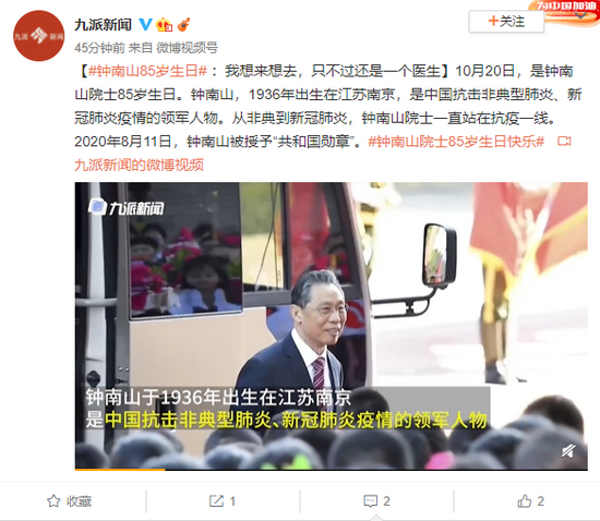 10月20日,是钟南山院士85岁生日。钟南山,1936年出生在江苏南京,是中国抗击非典型肺炎、新冠肺炎疫情的领军人物。从非典到新冠肺炎,钟南山院士一直站在抗疫一线。2020年8月11日,钟南山被授予“共和国勋章”。