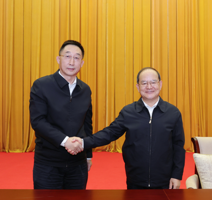 10月19日下午,在全区领导干部会议上,刘宁同志与鹿心社同志亲切握手。黄克 摄