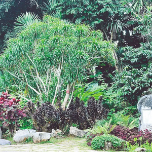 在西双版纳热带植物研究所里,有一种生长缓慢而耐干旱的喜光树,此树树干粗短,树皮灰白纵列,树叶繁茂。据说,古时巨龙与大象交战时,巨龙的血洒大地,后来从土壤中生出来的便是龙血树。当龙血树受到损伤时,便会流出像鲜血的树汁,为此,人们称这种流血树为“龙血树”。