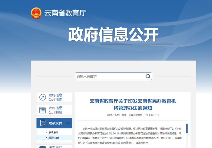 事关民办教育机构管理!云南省教育厅印发新修订的《管理办法》