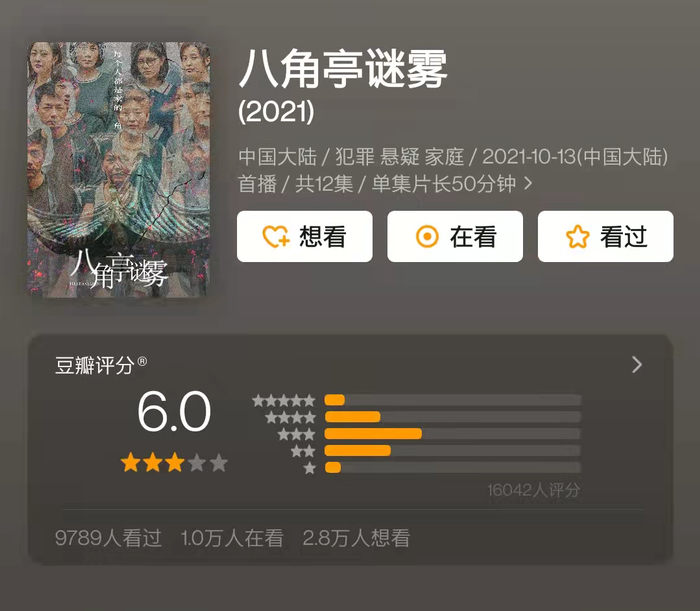 然而这部剧却未能如去年的《隐秘的角落》一般大爆,甚至口碑也不尽如人意,仅仅得到了6.0的及格分。