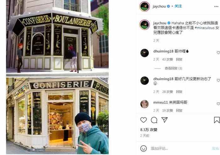 两天前,周杰伦在个人社交媒体上传了一张自己打卡巴黎知名甜品店的照片。