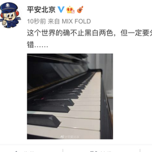 官宣前,平安北京还发文:这个世界的确不止黑白两色,但一定要分清和划清黑与白。这个,绝对不可以错……配了一张钢琴图。