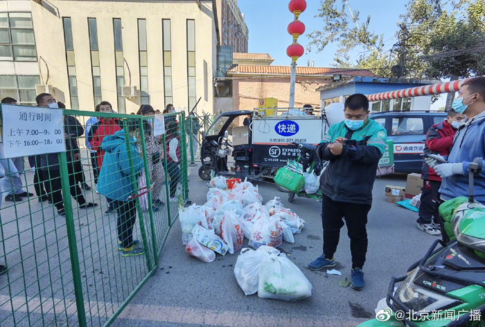 今天,北京昌平区疾控中心报告4例内蒙古旅游返京人员新冠病毒核酸检测阳性。4人于10月12日一同自驾出游,于10月16日返京。目前已将北七家镇宏福苑小区和沙河镇白各庄新村小区西一区划定为封控管理小区,严格落实各项管控措施。记者看到小区已经封闭管理,居民网购了不少蔬菜和水果,可以送到小区门口。#昌平4人核酸检测阳性##疫情通报#