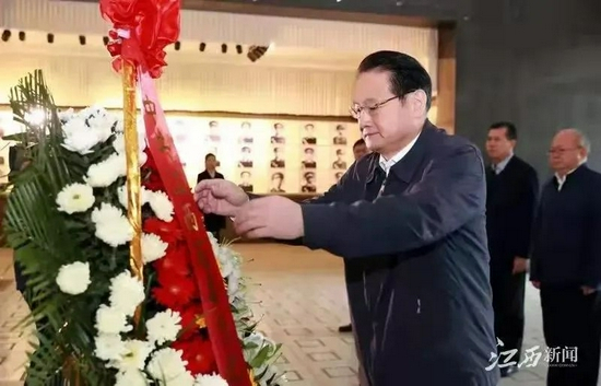 庄严肃穆的井冈山革命烈士陵园,松涛低吟、翠柏葱郁。当日上午,易炼红怀着无比崇敬的心情来到这里,他拾级而上,缓步走进纪念堂吊唁大厅,向革命烈士敬献花篮、整理缎带,并深深三鞠躬。在陈列室和忠魂堂,易炼红再次聆听一个个用理想信念、热血牺牲铸就的革命者故事。革命烈士英名墙上,镌刻着15744名井冈山斗争时期牺牲先烈的姓名,还有3万多名烈士没有留下姓名,无名烈士碑无声铭记着他们的不朽功名。易炼红驻足凝视、无限追思。他深情地说,江西是一片充满红色记忆的红土地,浸染着无数革命先烈的鲜血。革命战争年代,江西有名有姓的革命烈士有25万余人,但是更多烈士连姓名都没有留下。我们要始终牢记习近平总书记的殷殷嘱托,坚决不能忘记党的初心和使命,不能忘记革命理想和革命宗旨,不能忘记革命先辈、革命先烈,不能忘记革命老区的父老乡亲,继承革命先烈遗志,大力弘扬井冈山精神,以高质量跨越式发展的实际成效告慰革命先烈,努力让老区人民过上美好生活。