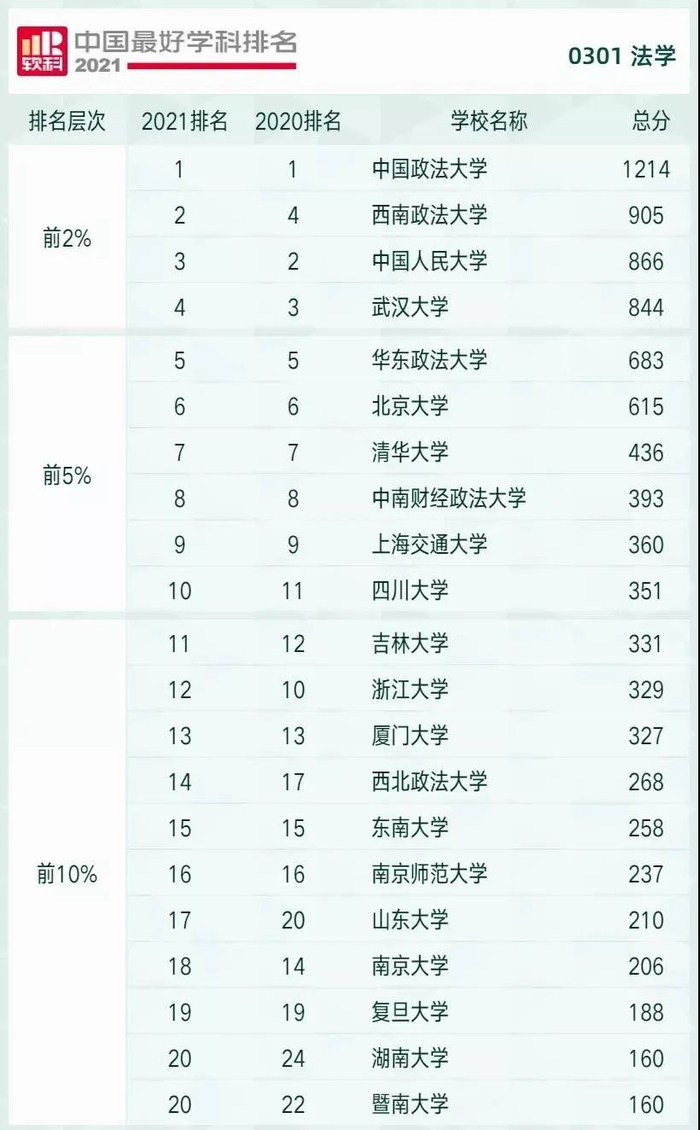 原标题:“2021年软科中国最好学科排名” 公布:我校法学学科蝉联榜首,其他学科持续提升