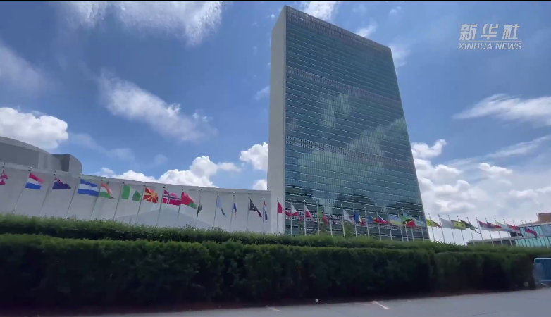 纽约曼哈顿东河之滨,联合国总部大楼外,鲜艳的五星红旗同蓝色的联合国会旗交相辉映,共同见证了50年来中国全面参与和支持联合国事业的不凡历程。