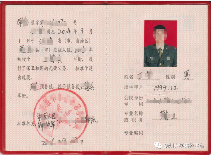 【士兵计划】报考退役大学生士兵专项计划的考生还应提交本人《入伍批准书》(即男性/女性公民应征入伍批准书、A4竖版单页样式)和《退出现役证》原件的照片。