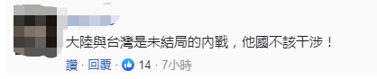 更有网友表示,“大陆与台湾是未结局的内战,他国不该干涉!”↓