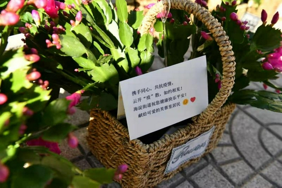 今天上午,北青-北京头条记者来到海淀芙蓉里社区,在北门外看到,9名顺丰快递小哥组成的志愿服务车队,拉着满满的鲜花,驶向芙蓉里小区。蟹爪莲、乒乓球、小玫瑰、仙鹤来、长寿花、火鹤……500余盆象征着长寿、吉祥、开心、平安等美好寓意的鲜花,将逐一送到小区里每户居民家中。鲜花赠语“携手同心,共抗疫情,云开‘疫’散,如约相见!海淀街道祝您健康快乐平安!献给可爱的芙蓉里居民。”代表了属地对居民们的最真诚的祝福!