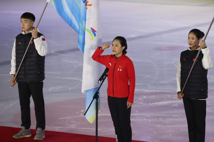 “红衣女孩”代表志愿者宣誓:为祖国争光,为冬奥添彩