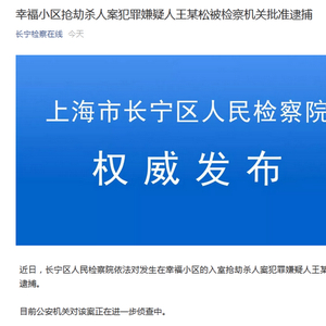 近日,长宁区人民检察院依法对发生在幸福小区的入室抢劫杀人案犯罪嫌疑人王某松批准逮捕。