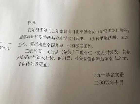 小时候听家里的大人们说,我们张氏一族是明朝洪武三年自河北枣强县迁过来的,自那以后就在淄博生根发芽,延续至今。《山东省淄川县志》中曾记载了这样一句话:是故,明初至清代中期,皇诏播迁,多次从山西、河北、四川、江苏、安徽等省移民至境内。中国的山西、河北、山东、河南、安徽等农村,曾广泛流传着两句民谚:“问我故乡在何处?山西洪洞大槐树。”明代初年,在大槐树处确曾有几次大规模的移民活动。为了防止族人相逢不相知,只要条件允许,家族的某些文化人便会组织修续族谱,查明根系。自明朝至今,文字可考的保存下来的族谱共有三份,分散于不同的支系中。