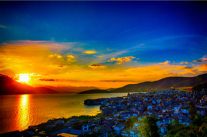金梭织锦,玉玑红莲、弥勒笑天、石女牧鹅、虎口观潮、青鸡欲跳、正觉钟声、红山圣迹、罗莳戏水、岛依古榕、莲花红遍、巨蟒奔海、龟蛇相峙等十八胜景与古镇蜿蜒、渔家灯火浓缩于苍山洱海双廊镇画卷之中,古人诗曰“目极湖山千里外,人在水天一色中”,不知这里是仙境,还是天上人间。
