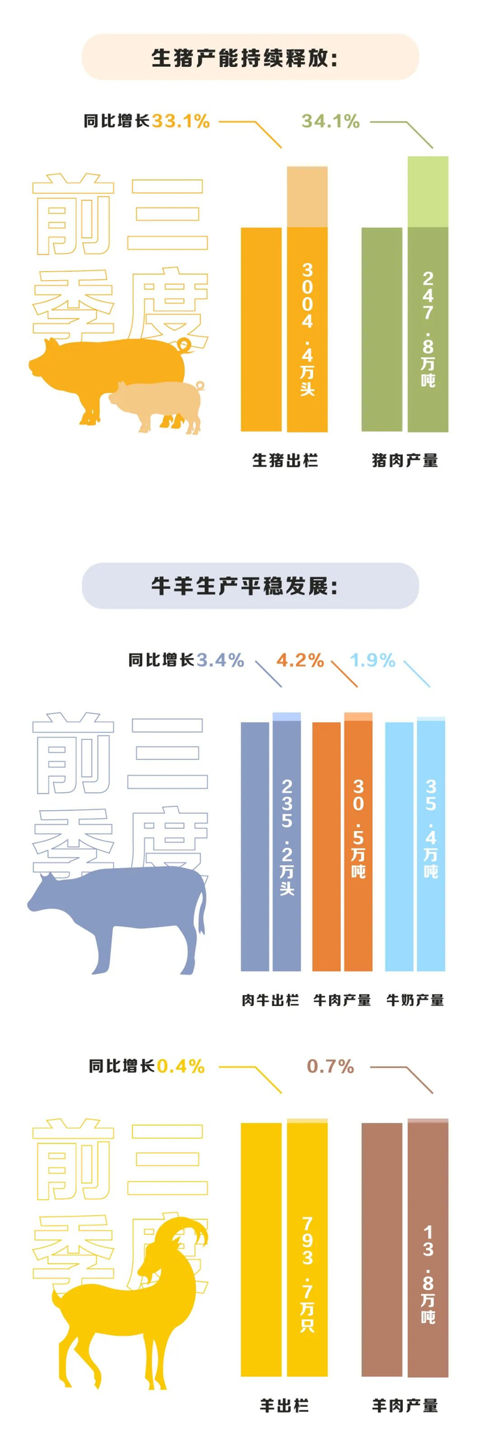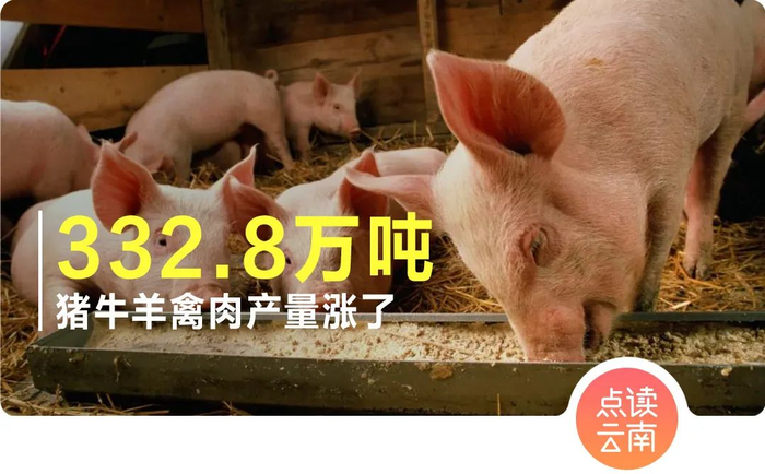 日前,国家统计局云南调查总队发布数据显示:今年前三季度,云南畜牧业生产快速增长,肉奶蛋供应充足,猪牛羊禽肉产量332.8万吨,同比增加64.8万吨,增长24.2%。