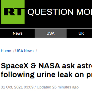 据美联社本月26日报道,该媒体援引美国太空探索技术公司(SpaceX)副总裁威廉·格斯登美尔的话称,“龙”飞船上月载4名游客展开首次“全平民”太空旅行期间,舱内一根管道没有黏合好,导致尿液洒到风扇和地板下。