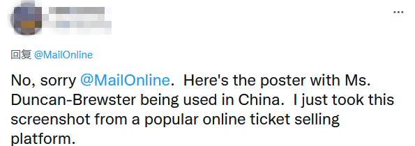 “不,很抱歉,这是布鲁斯特女士在中国的海报,我刚从一个售票平台上截取的这张图”