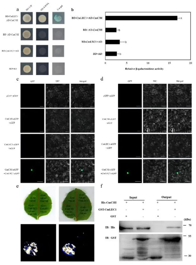 针对植物远缘杂交中普遍存在生殖障碍现象,作者在前期研究中以菊花为材料,发现胚胎败育是其远缘杂交生殖障碍的主要形式,其中NF-YB类转录因子CmLEC1、AP2/ERF类转录因子CmERF12很可能参与了胚胎发育调控(Zhang et al. BMC Genomics, 2016,17:585)。发表在Horticulture Research上的论文对CmLEC1功能和作用机制进行了详细解析。作者发现过表达CmLEC1转基因菊花能促进杂交胚胎的正常发育,显著提高远缘杂交结实率,而amiR-CmLEC1干扰下调转基因菊花的远缘杂交结实率则显著降低。为深入研究CmLEC1正调控菊花胚胎发育的分子机制,作者通过酵母文库筛选获得CmLEC1互作蛋白CmC3H,并通过酵母双杂交、LCI、BiFC和Pull-down等实验验证了该互作,同时挖掘到CmLEC1的靶基因CmLEA,进一步研究发现CmLEC1可通过与CCCH锌指蛋白CmC3H相互作用形成复合物,进而结合CmLEA启动子的CCAAT基序促进其转录。