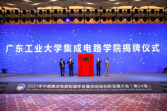 11月2日上午,在广州市黄埔区举办的第24届中国集成电路制造年会暨供应链创新发展大会高峰论坛上,广东工业大学集成电路学院揭牌成立。广东省副省长王曦、广东省政府副秘书长许典辉、广东省教育厅副厅长那佳、我校校长邱学青共同为集成电路学院揭牌。来自集成电路产业界、科技界、教育界、金融界等各界人士共500余名嘉宾参加活动。