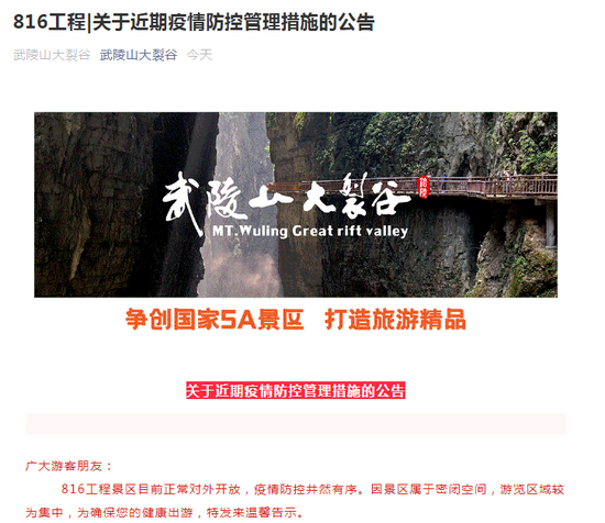 五、各类大型实景演艺、文艺演出暂不举办;景区景点严格落实限流、预约、错峰要求,严格查验健康码、行程码。
