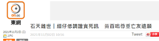 有网友今天上午在微博发文称,石天已经去世,并表示“难过”,香港艺人林俊贤昨晚也在社交媒体发文悼念石天,称收到对方离世的消息。不过据香港“东网”稍早前报道,电影制片人施南生1日接受港媒采访时,称已收到朋友传来关于石天离世的短信,但现在未能证实消息真伪,她还称石天2年前曾患癌但已康复。