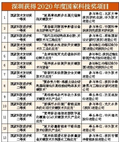 原标题:2020年度国家科技奖揭晓 深圳13个项目获奖