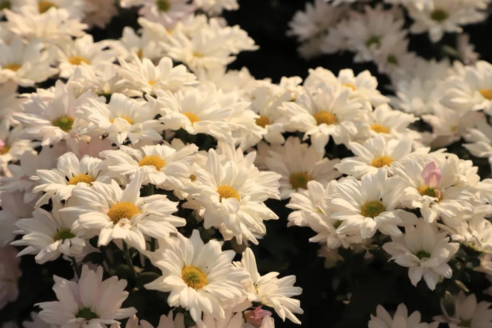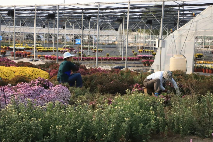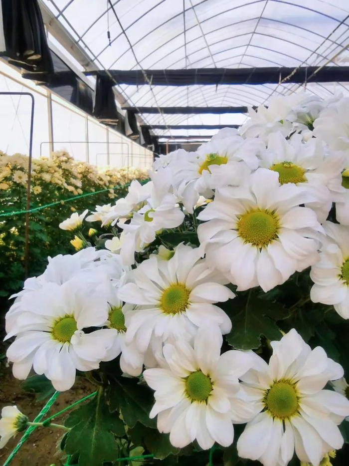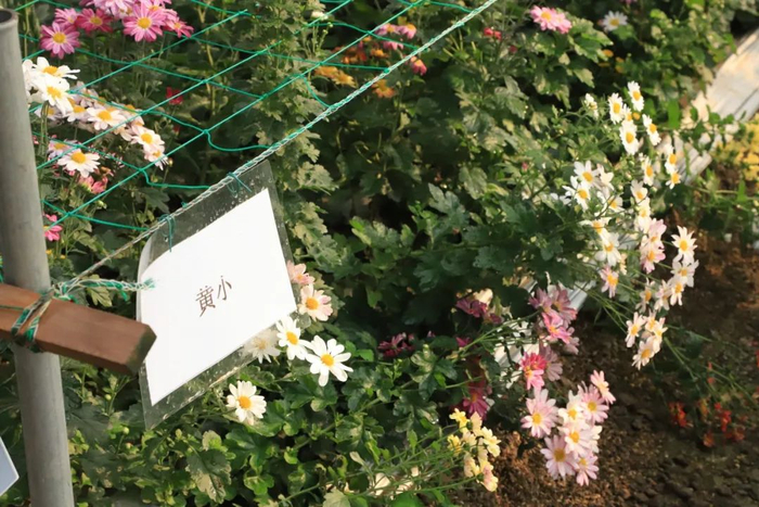 在菊花试验田,我们看到大片的还未完全开放的迷你小白菊、小黄菊,甚至还有其貌不扬的野菊花,很难想象花圃里那些繁盛美丽的切花菊是由这些亲本一步步杂交培育而成的。