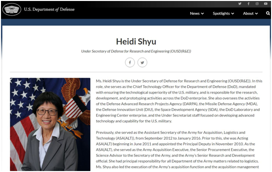 被岛内视为“台湾之光”的美国“台二代”,还有国防部负责研究与工程事务的副部长徐若冰。