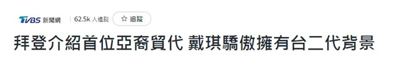 对前半句,台媒视若无睹,直接把戴琪夸成“台裔内阁第一人”。