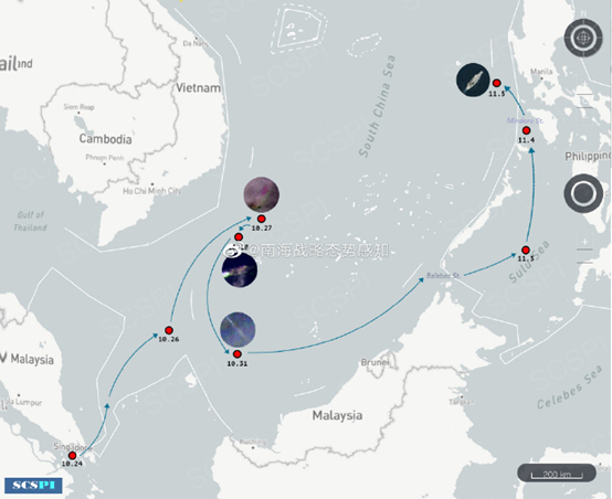11月2日,日本“加贺”号直升机母舰已机动至南沙群岛以北海域。同时美国“卡尔·文森”号航母却于3日经巴拉巴克海峡离开南海进入苏禄海活动。