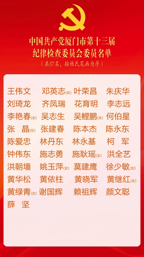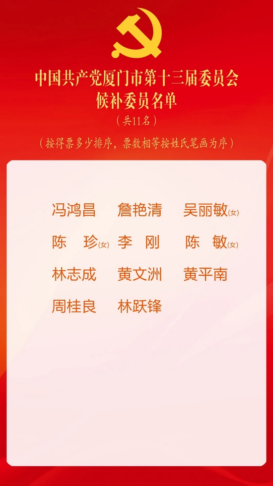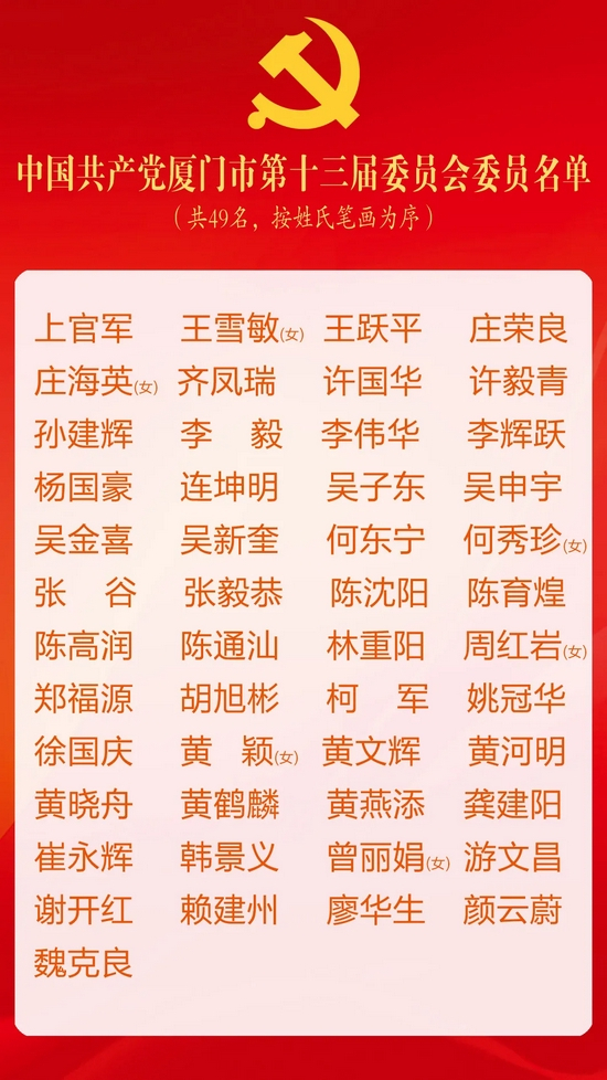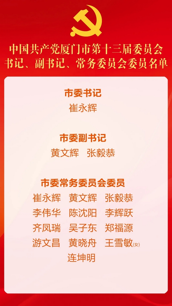 厦门市第十三次党代会闭幕!新一届市委委员、市委候补委员、市纪委委员名单出炉!